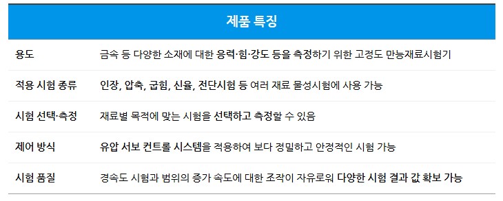 300kN(30tf)·500kN(50tf) 등급으로 다양한 산업 소재 시험에 대응하며,