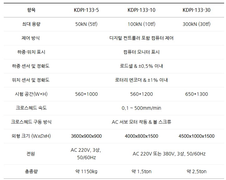 , 50kN부터 300kN까지 다양한 용량 모델을 제공합니다.