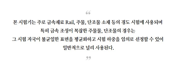 철강·레일·구로 등 산업용 소재 검사에 널리 사용되며 정확성과 재현성이 요구되는 현장에서 적합한 장비입니다.