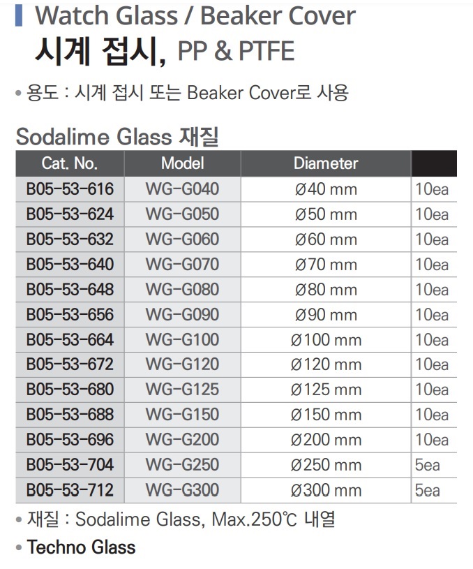 시계접시 Sodalime Glass 재질 Watch Glass / Beaker Cover, B05-53-616