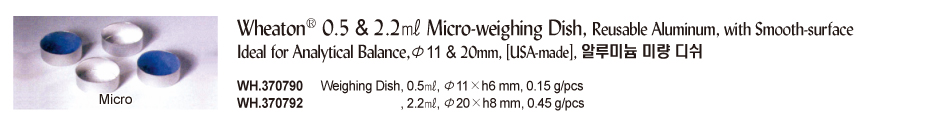 Wheaton® 0.5 & 2.2㎖ Micro-weighing Dish, Reusable Aluminum, with Smooth-surfaceIdeal for Analytical Balance, Φ11 & 20mm, [ USA-made ]