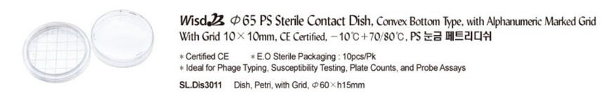 품명 PS 눈금 페트리디쉬 Wisd Φ65 PS Sterile Contact Dish