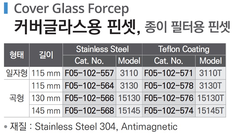 커버글라스용 핀셋, 종이 필터용 핀셋 Cover Glass Forcep F05-102-557