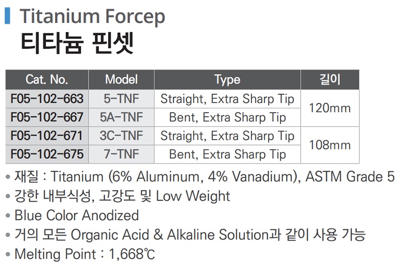 티타늄 핀셋 Titanium Forcep F05-102-663