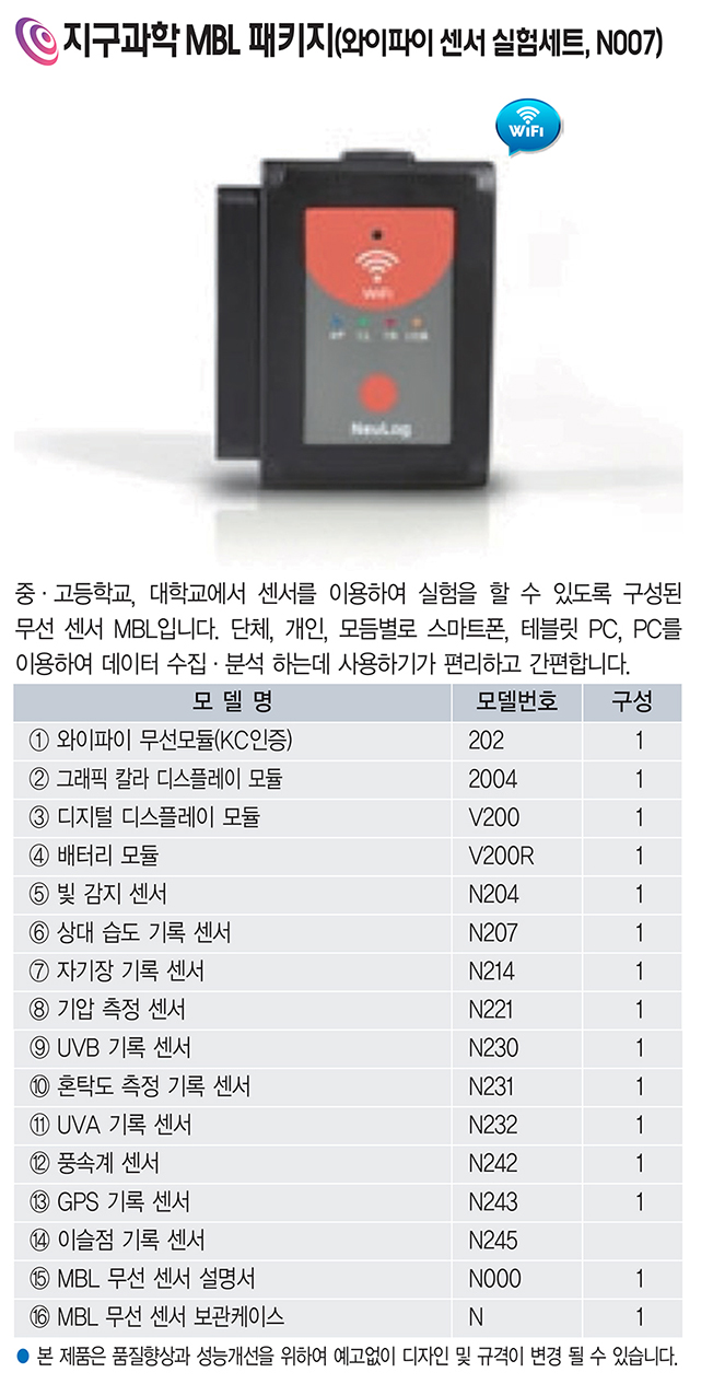 지구과학 MBL 패키지 와이파이 센서 실험세트(N007) VLS-0128