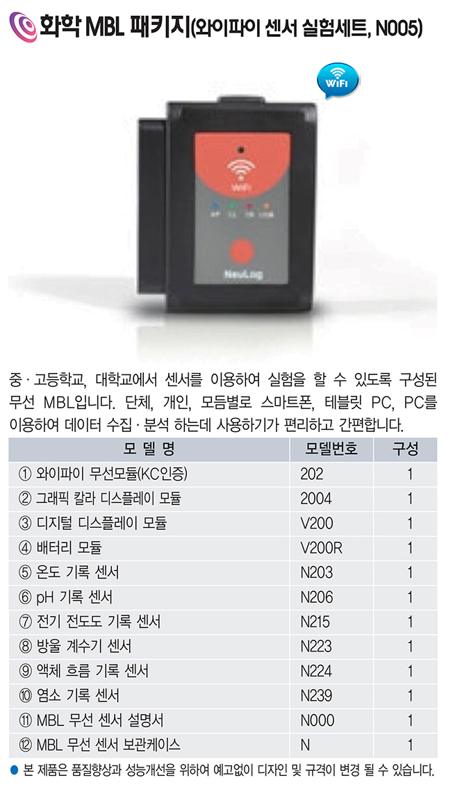 품명 : 화학 MBL 패키지 와이파이 센서 실험세트(N005)