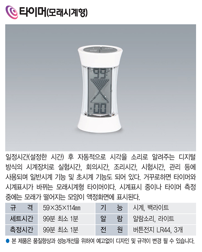 품명 모래시계형 디지털 타이머는 1~99분 설정, 알람과 백라이트 기능을 갖춘 실험·조리·회의용 다기능 타이머로 직관적인 LCD 모래 애니메이션이 특징입니다.