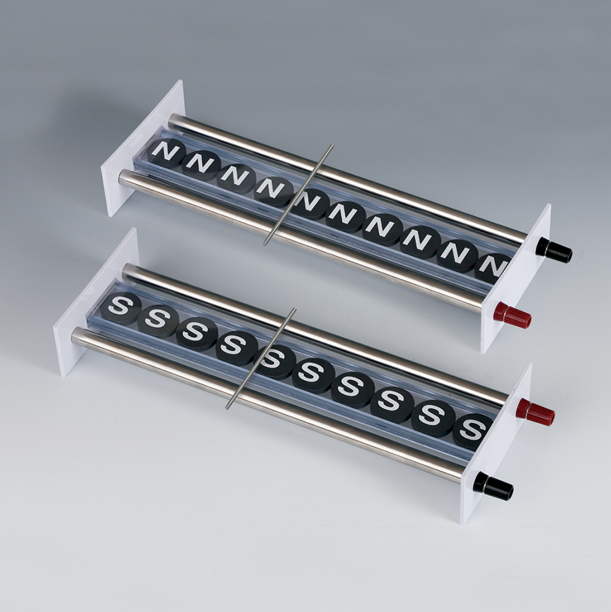 품명 레일 위에 둔 금속막대가 전류와 자계의 힘으로 움직이는 것으로 전자력의 움직임을 실감할 수 있는 실험기이다. 중앙의 자석은 모두 윗면이 N극, 아래 면이 S극으로 되어 있다. 본체는 위아래 양면 모두 사용할 수 있으므로 자계의 방향의 차이에 따른 금속 막대의 움직임도 관찰할 수 있습니다.