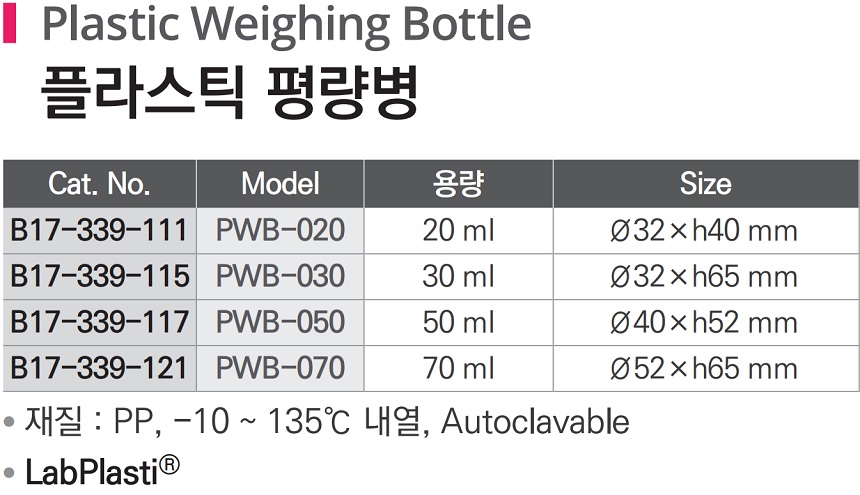 플라스틱 평량병 Plastic Weighing Bottle, B17-339-111