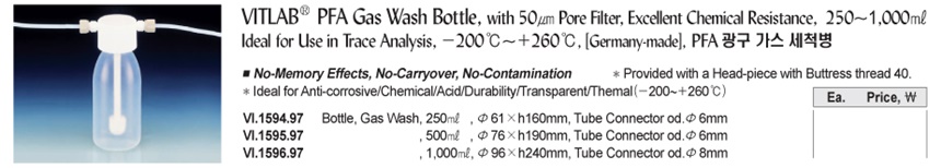 품명 광구 가스 세척병 250~1,000㎖ PFA Gas Wash Bottle