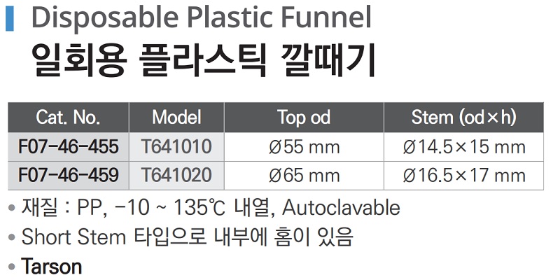 일회용 플라스틱 깔때기 Disposable Plastic Funnel F07-46-455