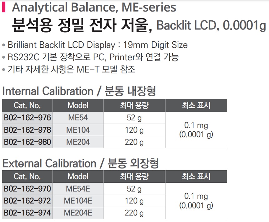 Internal Calibration / 분동 내장형| Cat. No | Model | 최대 용량 | 최소 표시 |