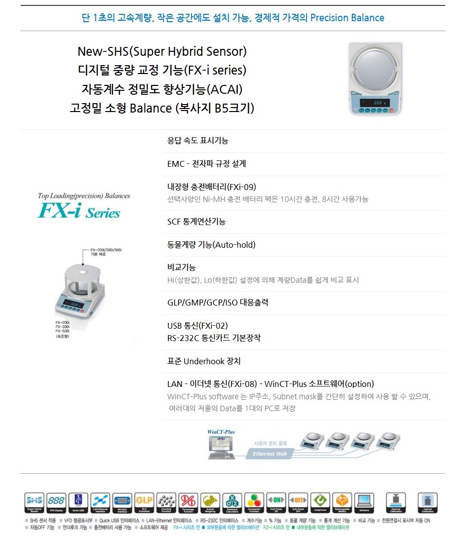 FX-i 시리즈는 고속 응답성과 고정밀 측정 성능을 제공하는 경제적인 디지털 전자저울입니다.