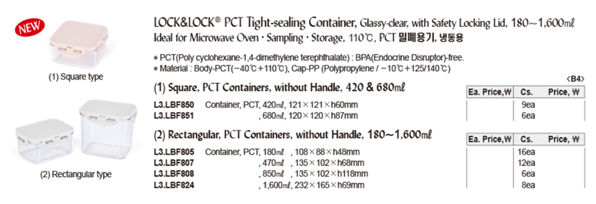 밀폐용기, 냉동용 PCT (정사각형/직사각형)