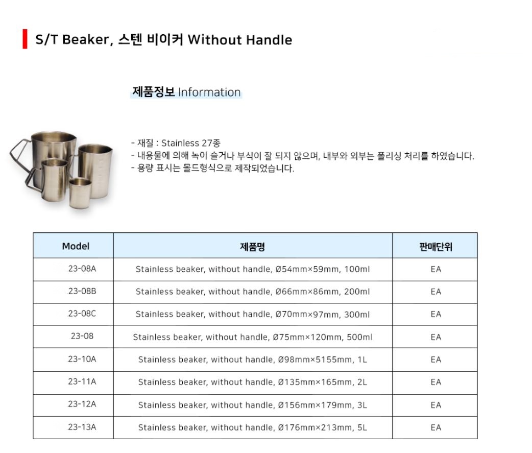 품명 스텐 비이커 비커 S/T Beaker Mc00620