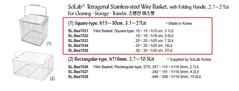 SciLab® Tetragonal Stainless-steel Wire Basket, with Folding Handle, 2.7~27LitFor Cleaning·Storage·Transfer, 스텐선 바스켓