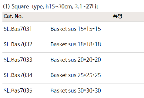 품명 정사각형 스텐선 바스켓 h15cm - 30cm