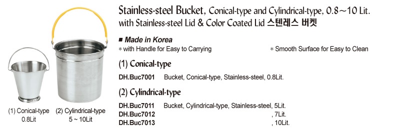 Stainless-steel Bucket, Conical-type and Cylindrical-type, 0.8~10 Lit. with Stainless-steel Lid & Color Coated Lid 스텐레스 버켓