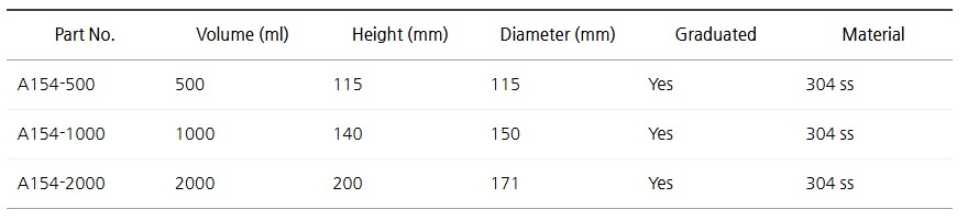 304 스테인리스로 제작된 꼬깔형 저그(Conical Jug) 는