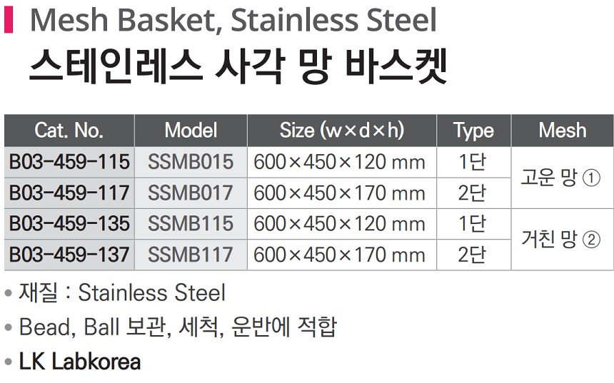스테인레스 사각 망 바스켓 Mesh Basket, Stainless Steel, B03-459-115