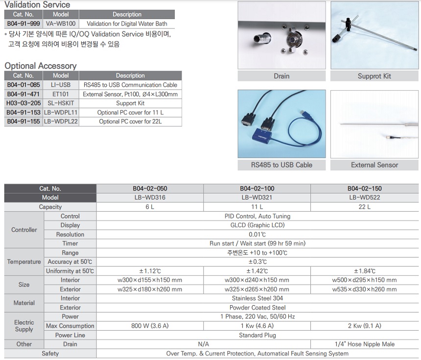 ■ Bath 내부 용액을 편리하게 배출 시킬 수 있는 Drain 장착 (LB-WD522)