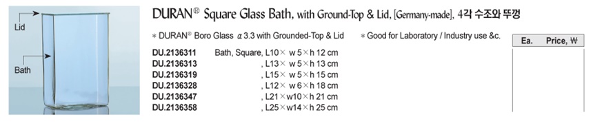 DURAN® Square Glass Bath, with Ground-Top & Lid , [ Germany-made ] , 4 각 수조와 뚜껑