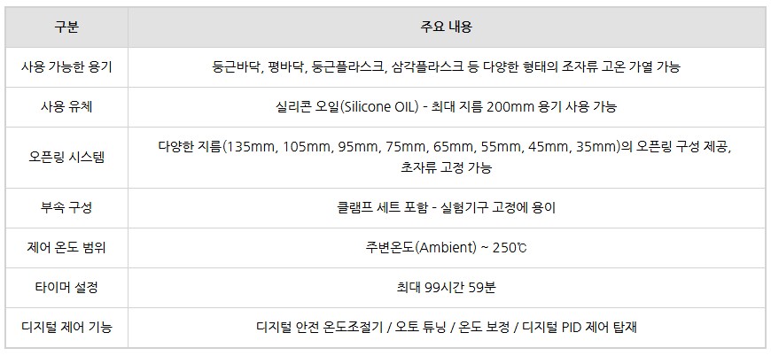 품명 최대 250도 디지털 오일배스 C-WHT-D 실리콘 오일 전용 정밀 온도제어 SUS304 재질 실험용 배스