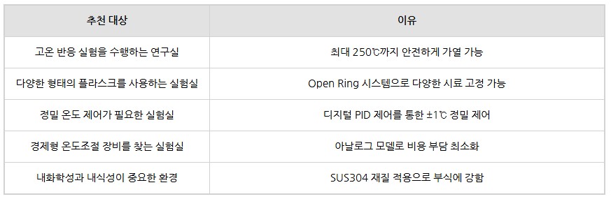 고온의 반응 실험이나 장시간 가열 실험에 적합한 장비입니다.