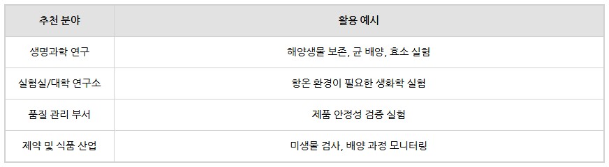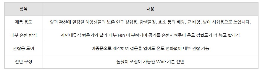 해양생물 보존, 효소 실험, 황생물질 연구 등 온도 균일성과 정확성이 중요한 실험에 최적화된 열풍순환식 항온기입니다.