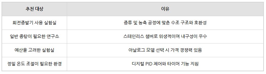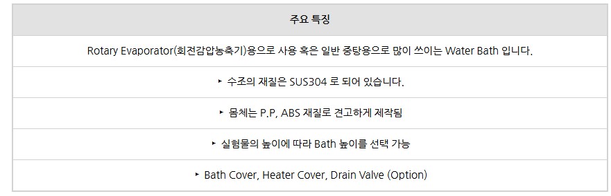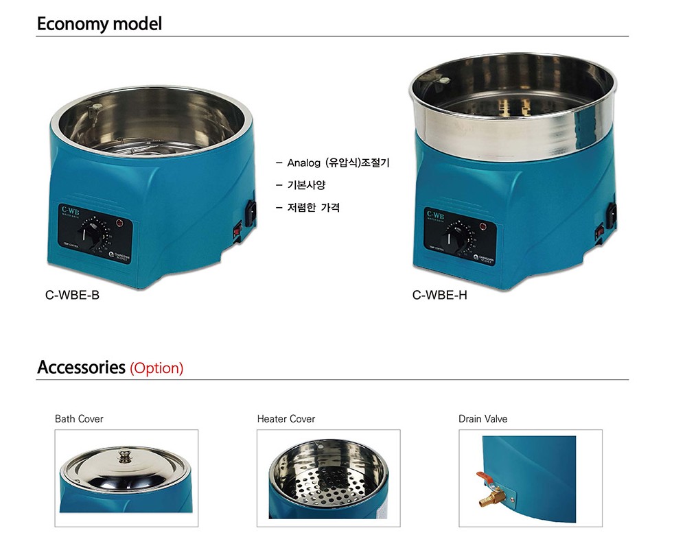 배수밸브, 히터커버, 바스커버 등 다양한 옵션 선택이 가능해 사용자의 실험 환경에 맞춘 구성이 가능합니다.