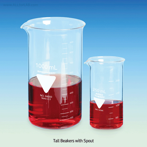 25~2,000㎖ Popular Glass Tall Beakers, with Graduation Made of Borosilicate-glass 3.3, Useful for Heating & General-purpose, 유리 톨 비커