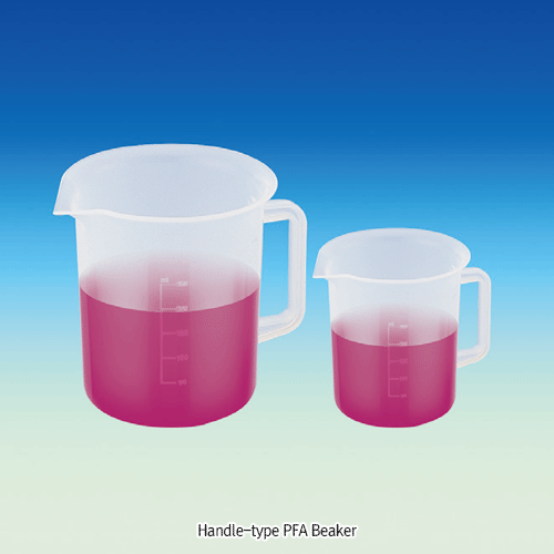 SciLab® Pure PFA Beaker, Smoothly Wide Rim-type, With or Without Handle, Mould-Graduated, 50~1,000㎖Good Transparency, Excellent Heat/Chemical Resistance, -200~+280℃, Autoclavable, PFA 투명 Teflon 비커