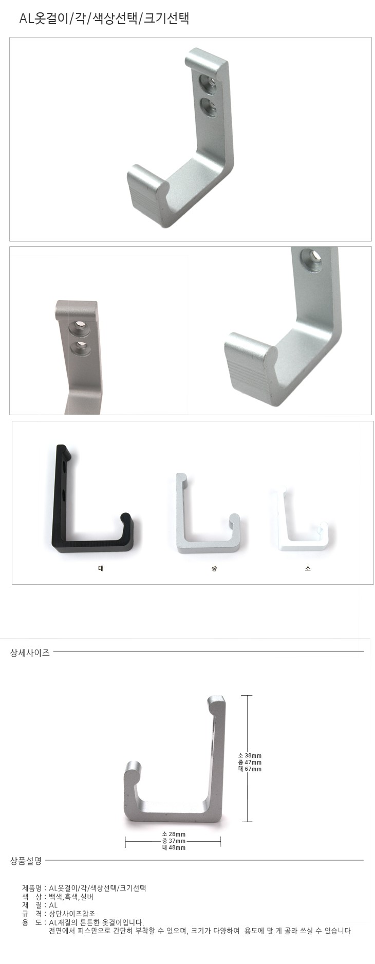 품명 AL옷걸이 (각/ 소 25X38mm/ 백색)