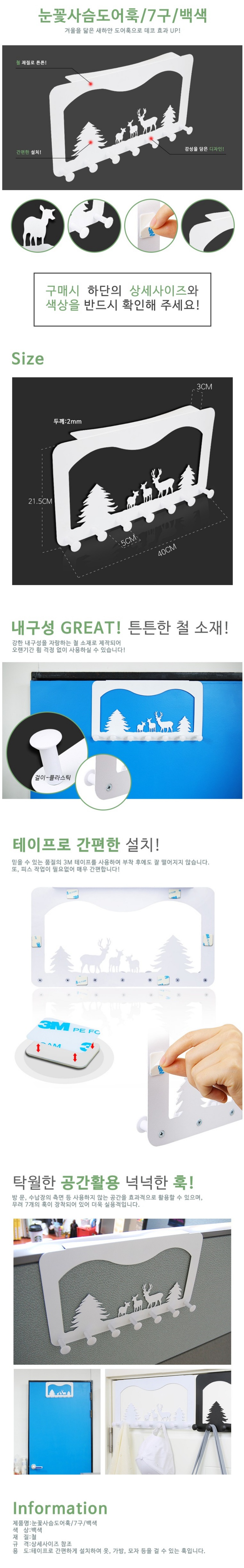 품명 (CH)눈꽃사슴도어훅 (7구/백색/400*215mm)