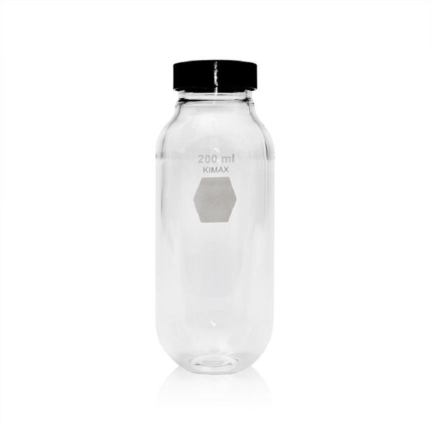 품명 ■ Kimax® Borosilicate Glass 3.3, USP TypeⅠ, ASTM E438 TypeⅠ, Class A ■ Small Bottom Area : Better Concentration ■ Pulp / Vinyl Coated Liner를 가진 Black Closure ( 38-400 ) ■ Max. RCF : 3550 ■ Kimble®