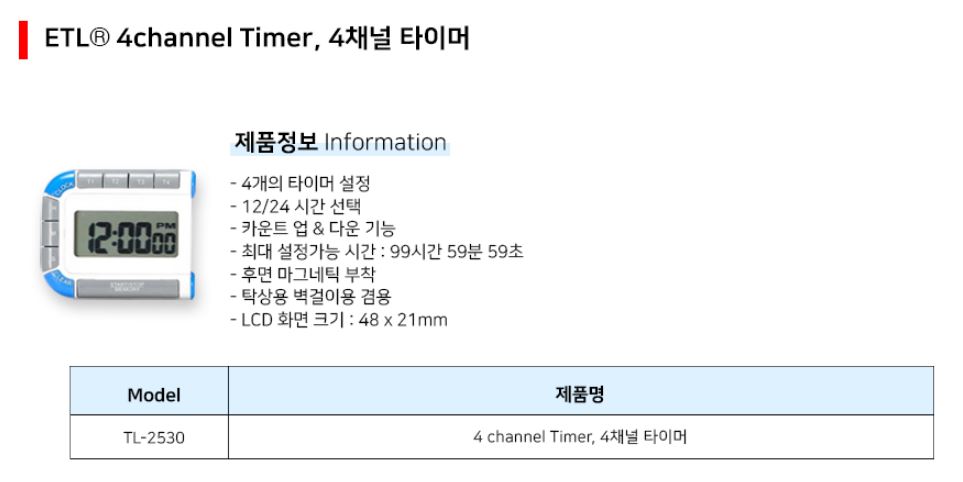 품명 4채널 타이머 Timer