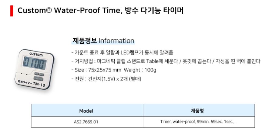 품명 방수 다기능 타이머 Water-Proof Time