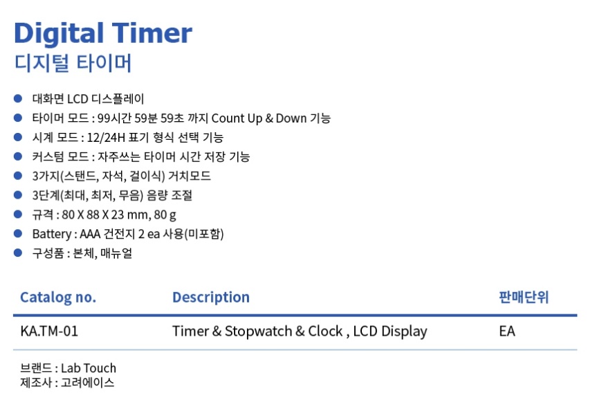 품명 LCD 디스플레이 자주쓰는 타이머 시간 저장 가능