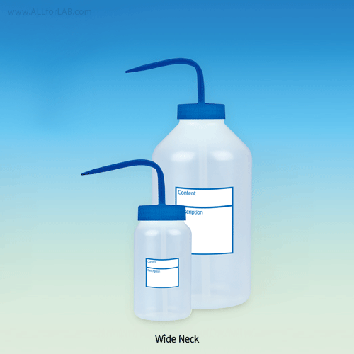 Wisd Autoclavable PP Narrow & Wide-neck Wash Bottle, Fine Graduated, Transparent, 500~1,000㎖Printed DIY Content Marking Area, GL32 & GL45, 0℃~+125/140℃ Withstand , PP 세구 & 광구 세척병