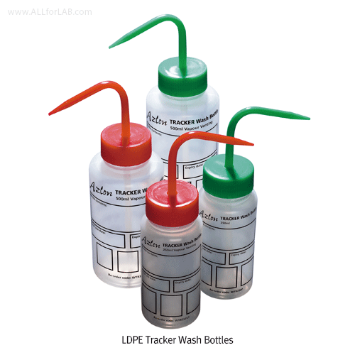 Azlon® LDPE Tracker Wash Bottles, Traceability, Write-On, Wipe-Off Panel, 250/500㎖ with Vent or Plain -Cap, Ideal for Clinical, Hospital & Lab., 트레카 세척병