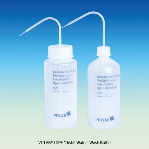 VITLAB® LDPE “Distill Water” Wash Bottle, Imprint-3 Languages, w/PP Screwcap & Spray Tube, 1,000㎖Made of Low-density Polyethylene, Precise Spray Jet, -50+80℃ , [ Germany-made ] , LDPE 증류수 전용 세척병