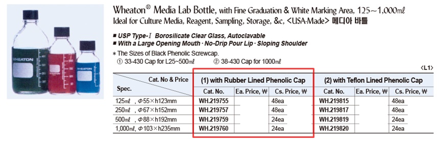 Wheaton® Media Lab Bottle, with Fine Graduation & White Marking Area, 125~1,000㎖