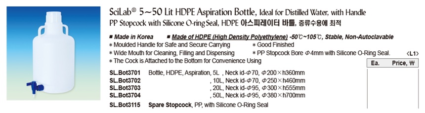 아스피레이터 바틀, 증류수용에 최적 증류수통 HDPE