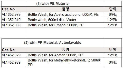 품명 내압 방지 안전 벤트캡 구조 PE & PP 안전세척병