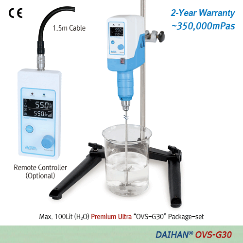 DAIHAN® PREMIUM Ultra Hi-Torque Overhead Stirrer “OVS-G30” , with Hi-Capacity BLDC-motor, Max. 60:1With Planetary-gear, Torque(Ncm)·Viscosity(mPas)·Temperature(℃)·Real Time Display, Optional Remote ControlMax. 550rpm, 350,000mPas, 프리미엄 초고점도용 교반기 , 고사양 BLDC-motor, 토크 · 점도 · 온도 표시기능