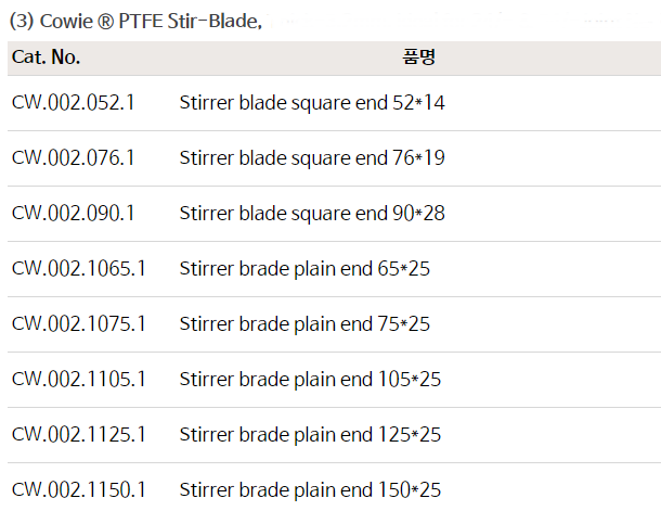 품명 ■ 교체형 글라스 & PTFE 교반봉과 임펠러