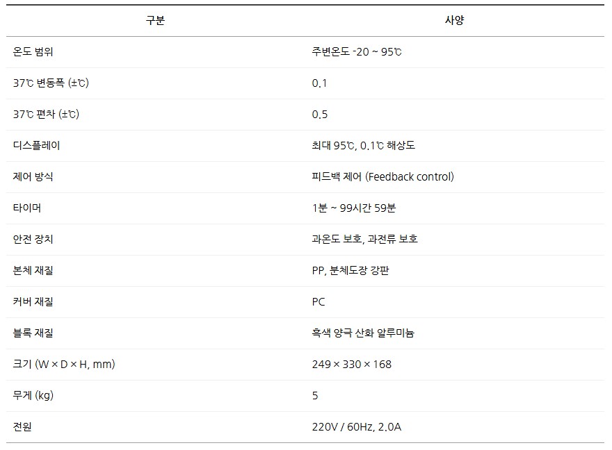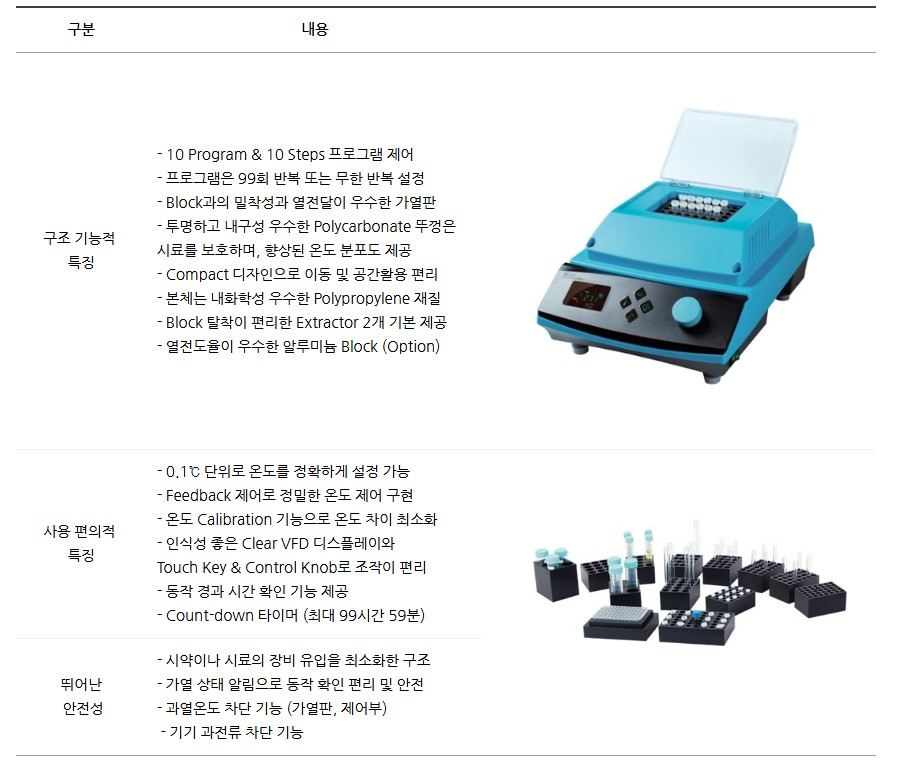 교체형 블록 옵션을 지원하여 다양한 실험 요구에 대응할 수 있습니다.