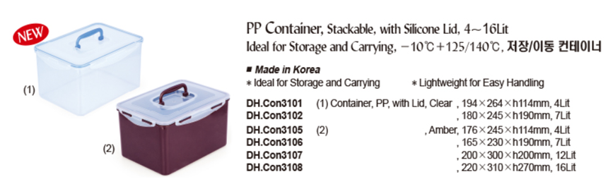 PP Container, Stackable, with Silicone Lid, 4~16Lit