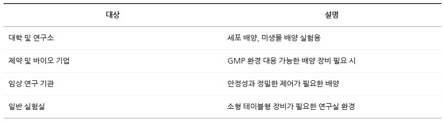 또한, GMP 요구사항에 대응할 수 있는 옵션 제공 및 안전성을 강화한 설계로, 연구실 환경에서 장기간 안정적으로 사용할 수 있습니다.