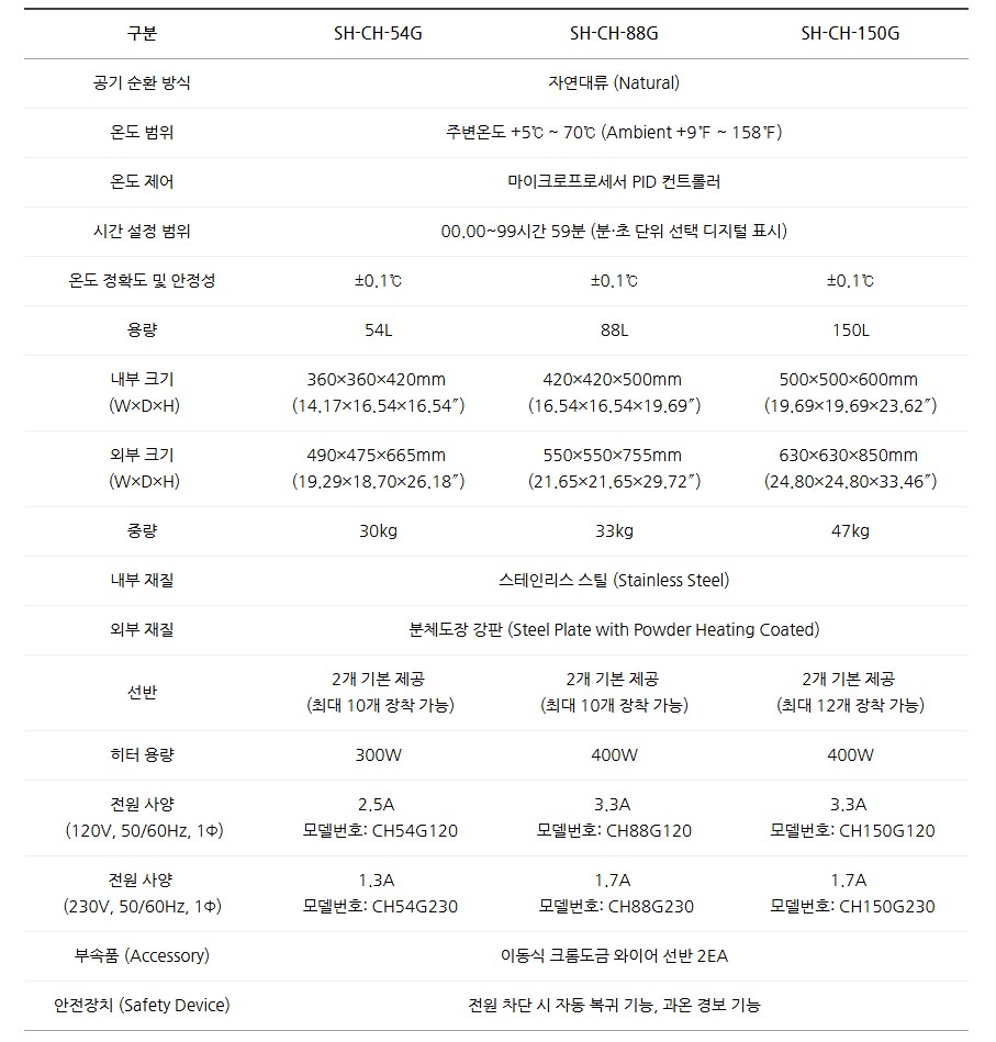 일반형 배양기 실험실용 스테인리스 자연대류식 인큐베이터 SH-CH-G 시리즈